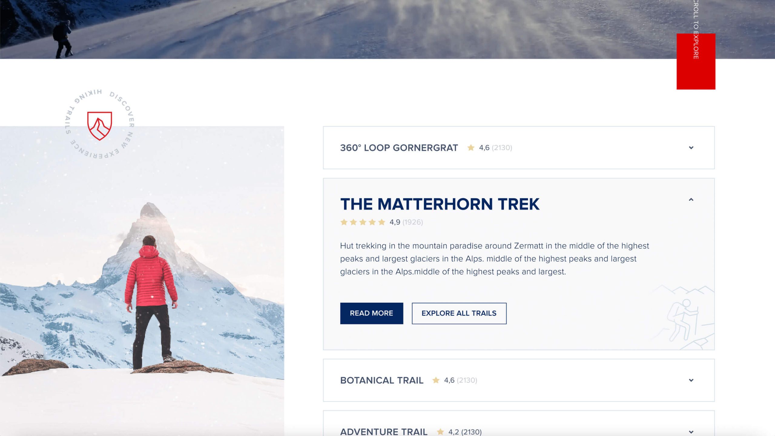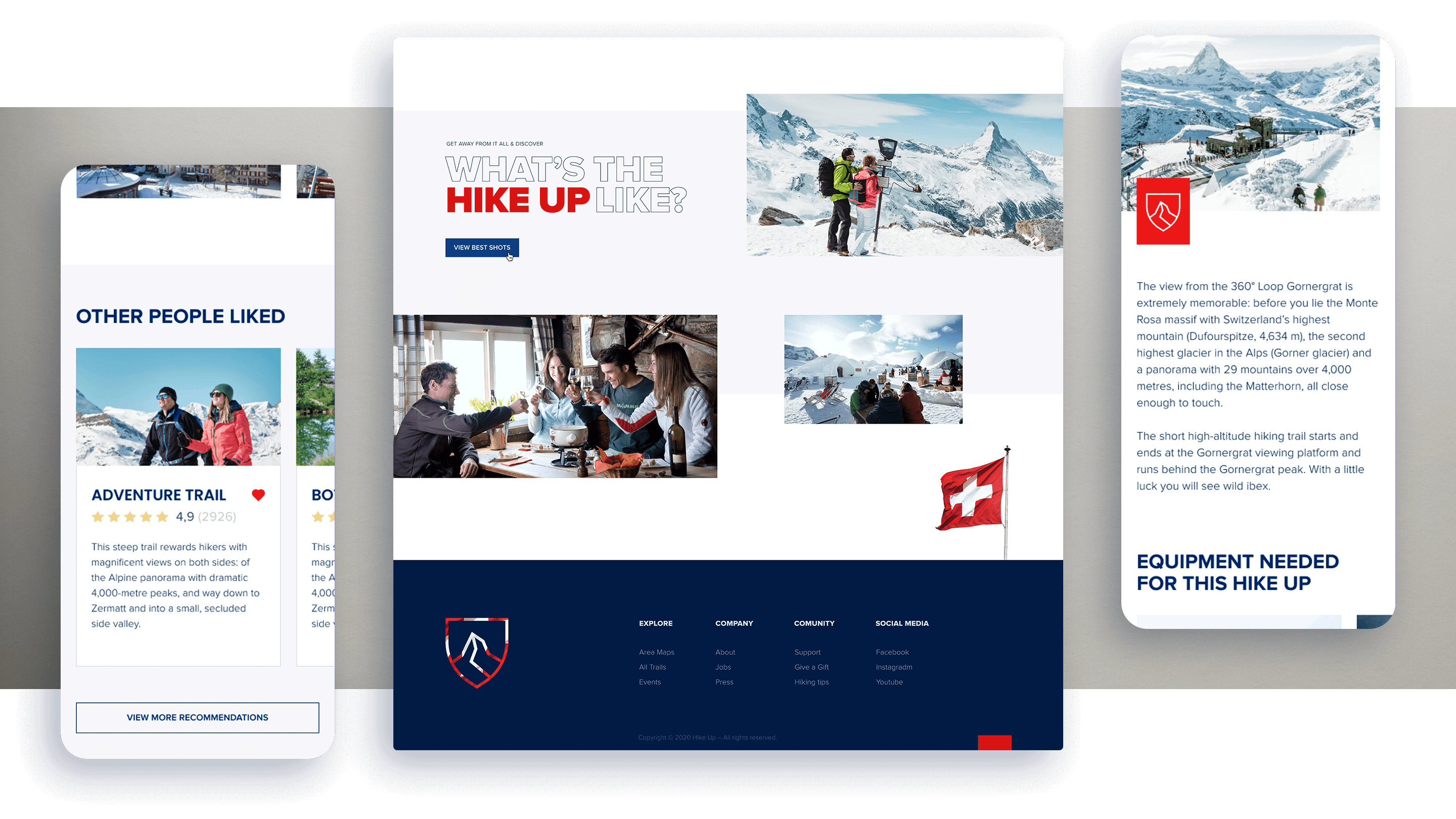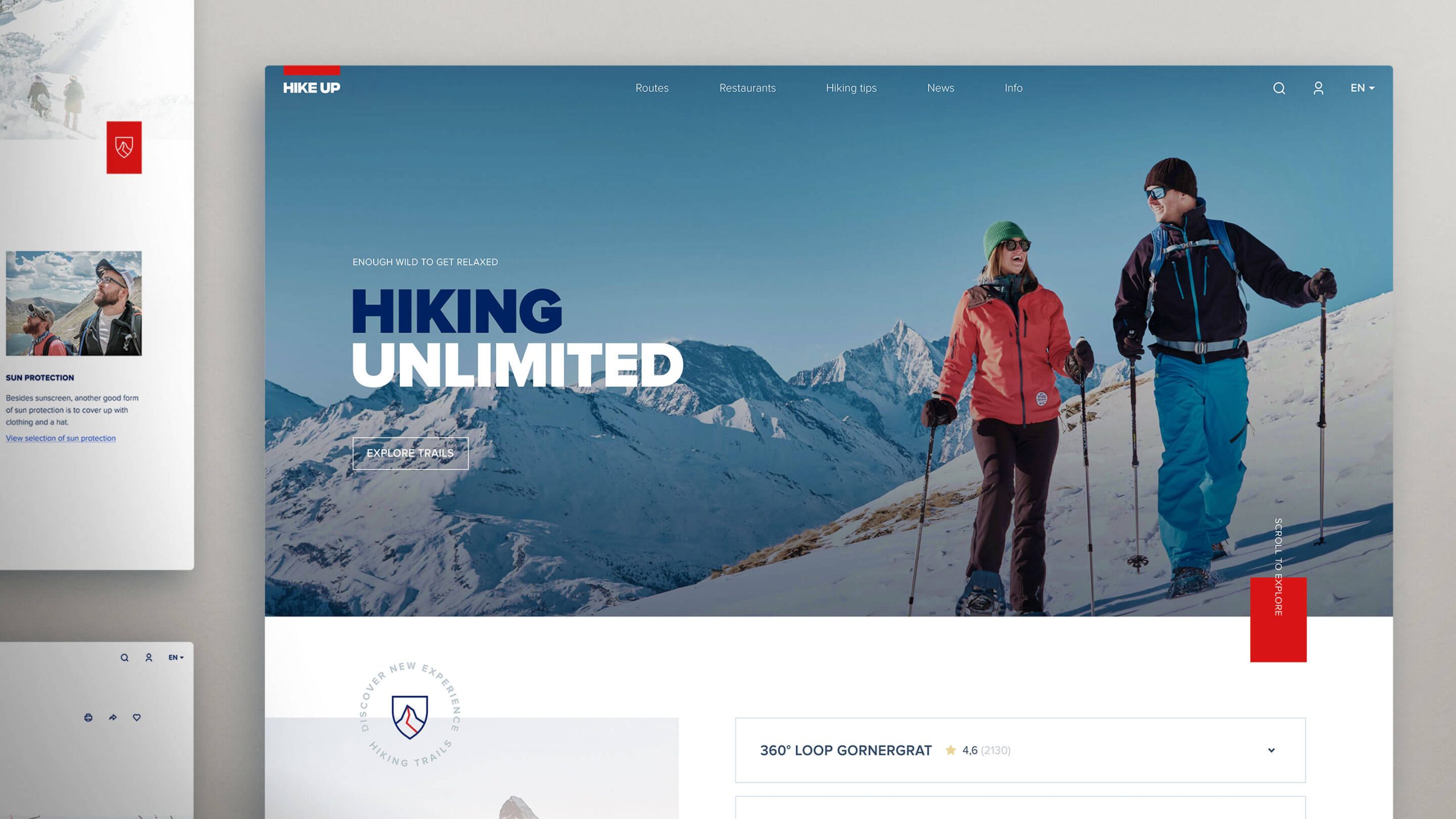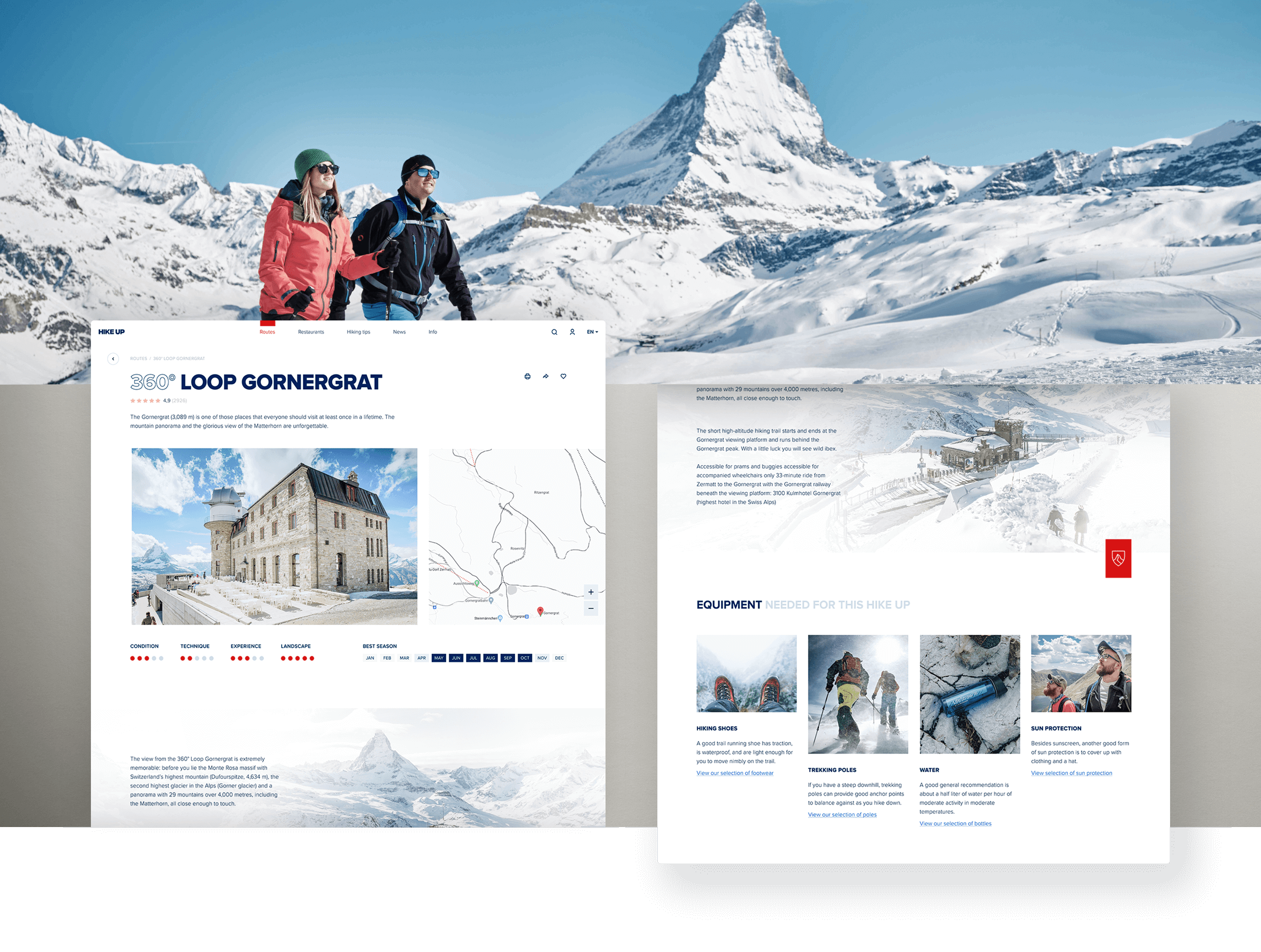 I was engaged by Ginetta, one of the top Swiss design studios from Zürich to visualize and design a website concept for the Hike Up, a hiking trails of Zermatt. It’s B2C web experience that helps tourists find the perfect trail and see the most beautiful sights during the hike.